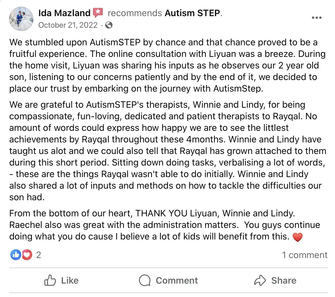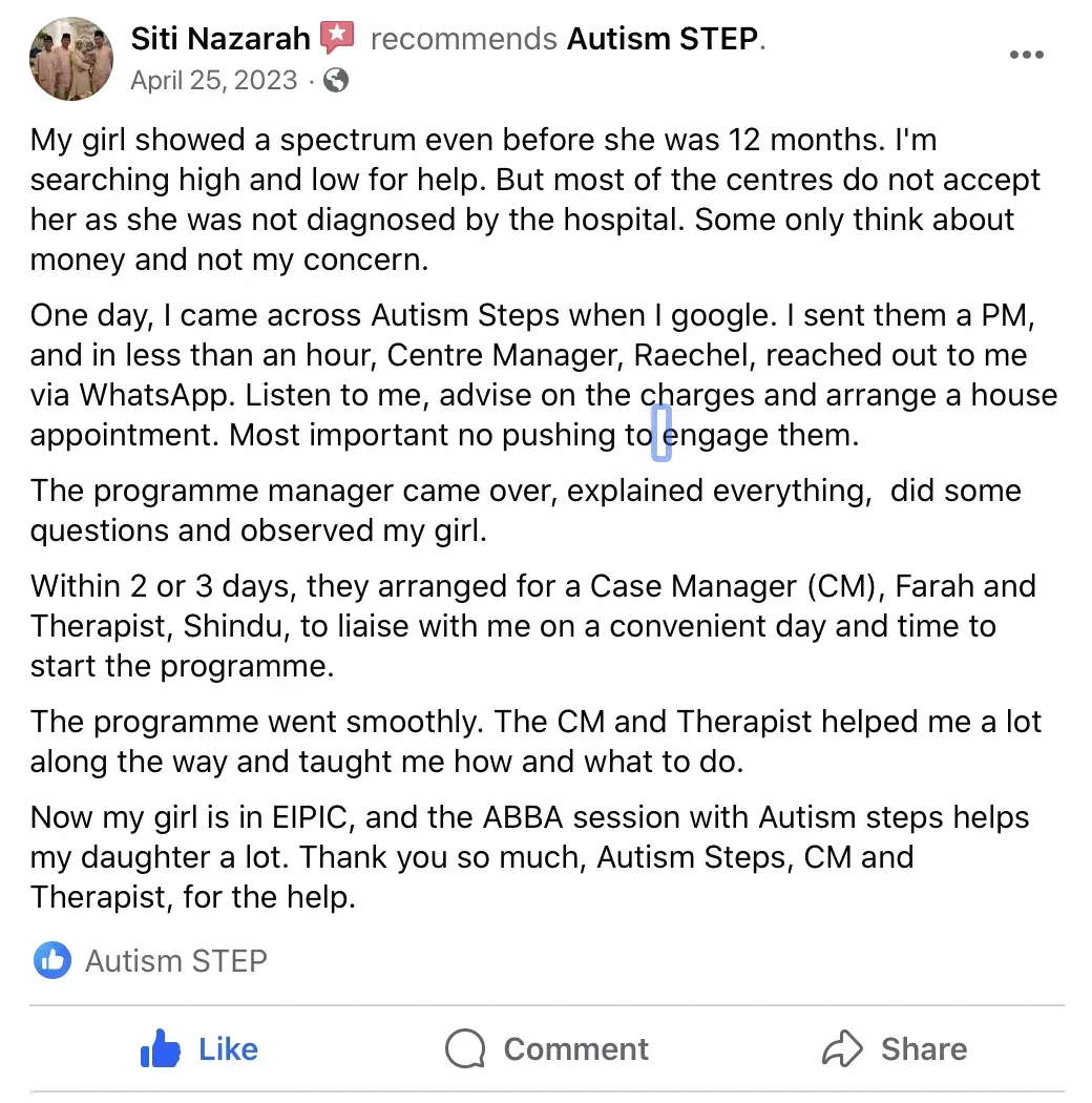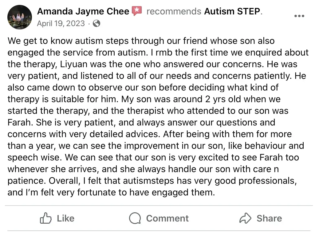 Experienced and Dedicated Team - With over 50 full-time therapists and 20+ years of experience, we’ve helped more than 1,500 families across Singapore.