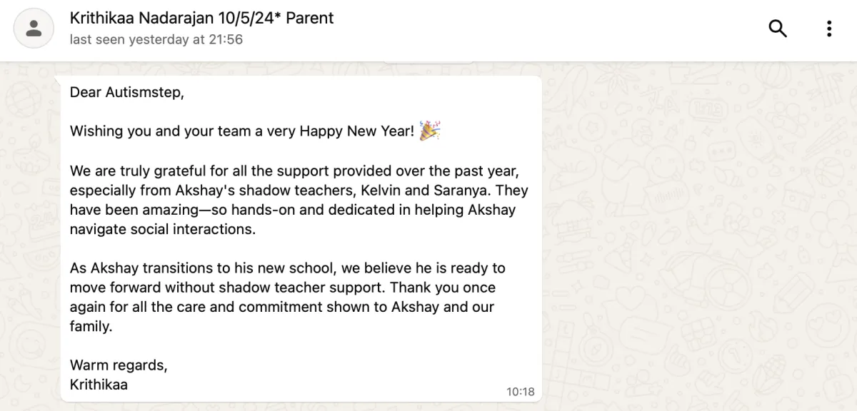 Started as a Therapist, Became a Founder - Inspired by his passion for child psychology and ABA therapy, he founded AutismSTEP in 2014 with just two therapists and has grown it into Singapore’s largest home-based autism intervention provider.